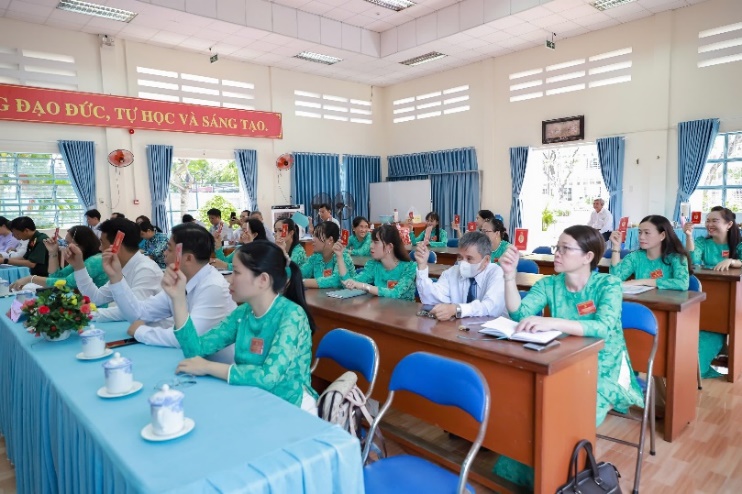Đại hội đã bầu ra Chi ủy Chi bộ nhiệm kỳ 2024 – 2027 thể hiện tinh thần đoàn kết và thống nhất trong công tác lãnh đạo, quyết tâm phấn đấu đạt được những mục tiêu đã đề ra. Chi ủy chi bộ nhiệm kỳ mới gồm 05 đồng chí và Đ/c Nguyễn Thị Nhung – Hiệu trưởng trường Tiểu học Nguyễn Huệ đã được Đại hội tín nhiệm bầu giữ chức Bí thư Chi bộ. Đồng chí Lê Ngọc Hùng – Bí thư Đảng uỷ Phường 6 đã biểu dương thành tích của Chi bộ trong nhiệm kỳ qua và bày tỏ kỳ vọng Chi bộ sẽ tiếp tục phát huy truyền thống, hoàn thành tốt nhiệm vụ được giao góp phần đưa Trường Tiểu học Nguyễn Huệ phát triển vững mạnh, nâng cao chất lượng giáo dục toàn diện.