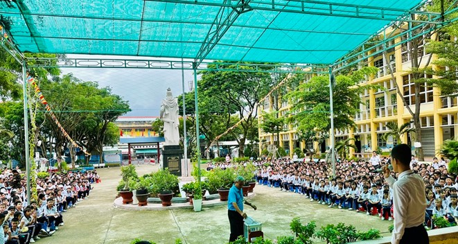 Vào lúc 13 giờ 40 phút, ngày 17 tháng 9 năm 2024 Đoàn nghệ thuật tình thương ở Đà Nẵng đã đến trường Tiểu học Nguyễn Huệ thành phố Mỹ Tho.