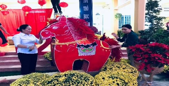 Những góc trang trí Tết dần hiện lên đầy sắc màu: nào là mai vàng rực rỡ, trạng nguyên đỏ thắm, lồng đèn tròn xinh đung đưa theo gió, chú ngựa tinh nghịch với chiếc bờm mềm mại cùng hoa văn bông sen hồng nền nã - hứa hẹn sẽ mang đến cho các em học sinh một không gian đón xuân vui tươi, ý nghĩa; đồng thời góp phần giáo dục các em về nét truyền thống của dân tộc trong những ngày đầu năm mới.