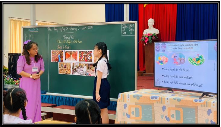 Thực hiện kế hoạch Chuyên môn năm học 2022 – 2023, thứ bảy ngày 04/03/20223 Trường Tiểu học Nguyễn Huệ tổ chức chuyên đề “Nâng cao chất lượng dạy học môn Tiếng Việt lớp 3”. Cô Bùi Nguyễn Thanh Hồng dạy minh họa - Bài Nghệ nhân Bát Tràng (Tiết 1) cùng với tập thể học sinh lớp Ba 3.