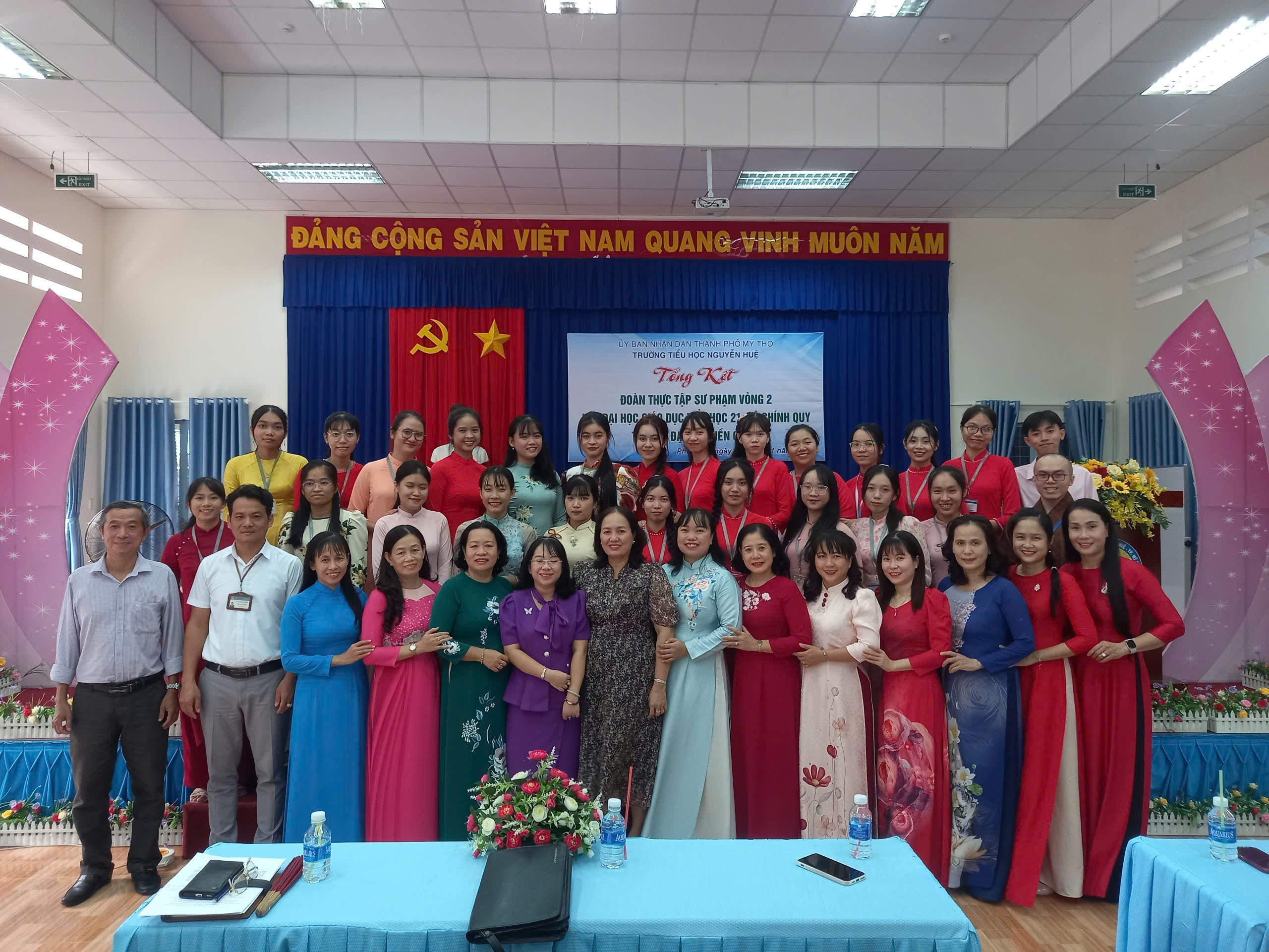 Trải qua 06 tuần thực tập tại trường, ngày 11/11/2024 các em sinh viên đoàn 5 lớp Đại học Giáo dục Tiểu học khóa 21 trường Đại học Tiền Giang đã tổng kết hoạt động thực tập sư phạm vòng 2 (năm thứ tư) tại trường Tiểu học Nguyễn Huệ.