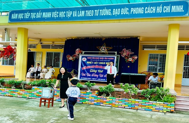 Với sự chào đón nhiệt tình và trân quý của Ban giám hiệu, sự mong chờ đầy háo hức của thầy và trò trường Tiểu học Nguyễn Huệ để được giao lưu và thưởng thức văn nghệ của những tài năng trẻ hoà nhập.