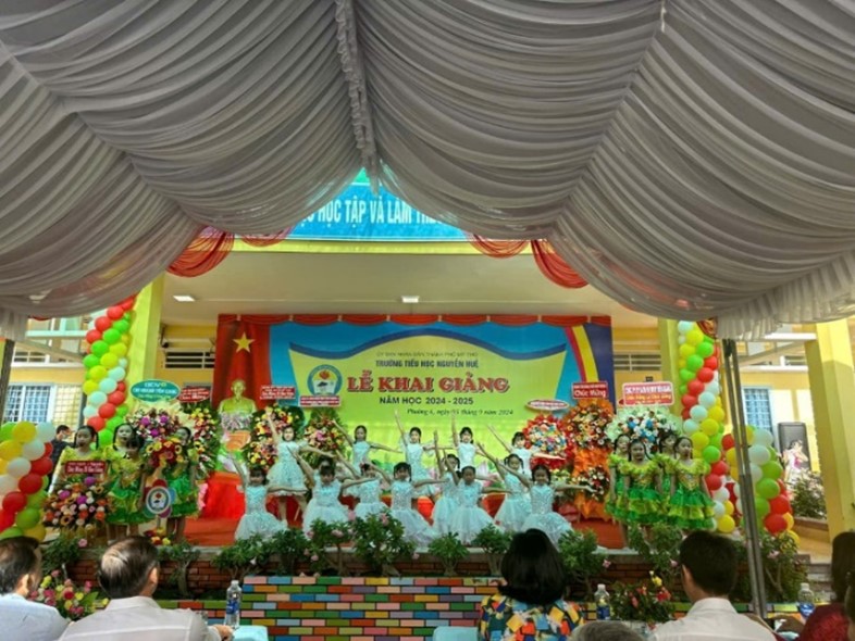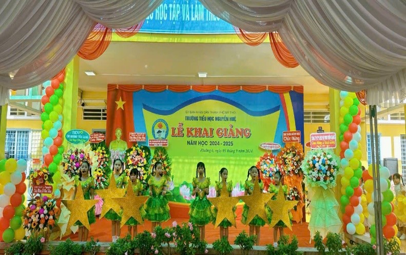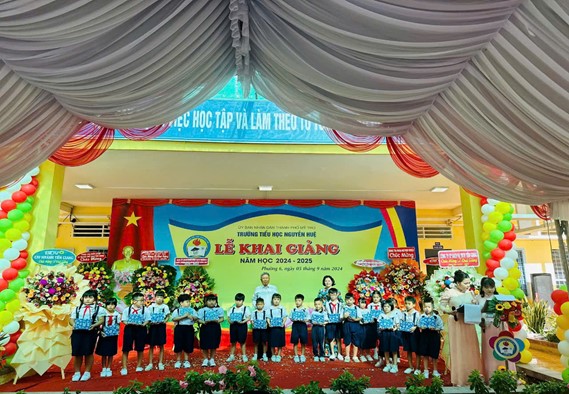 Hòa chung với không khí vui tươi của cả nước thi đua lập thành tích chào mừng kỉ niệm 79 năm Cách mạng tháng Tám và Quốc khánh 2/9, sáng ngày 05/9/2024 thầy và trò trường Tiểu học Nguyễn Huệ long trọng tổ chức Lễ Khai giảng năm học mới - Năm học 2024 - 2025.