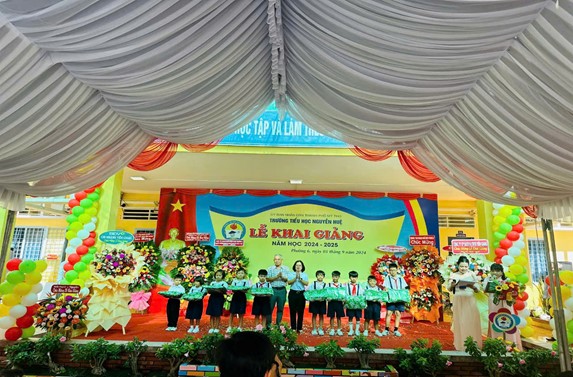 Cũng nhân dịp này, nhà trường cũng đã trao những phần quà tới các em học sinh có hoàn cảnh khó khăn. Đây là động lực để động viên các em phấn khởi bước vào năm học mới.